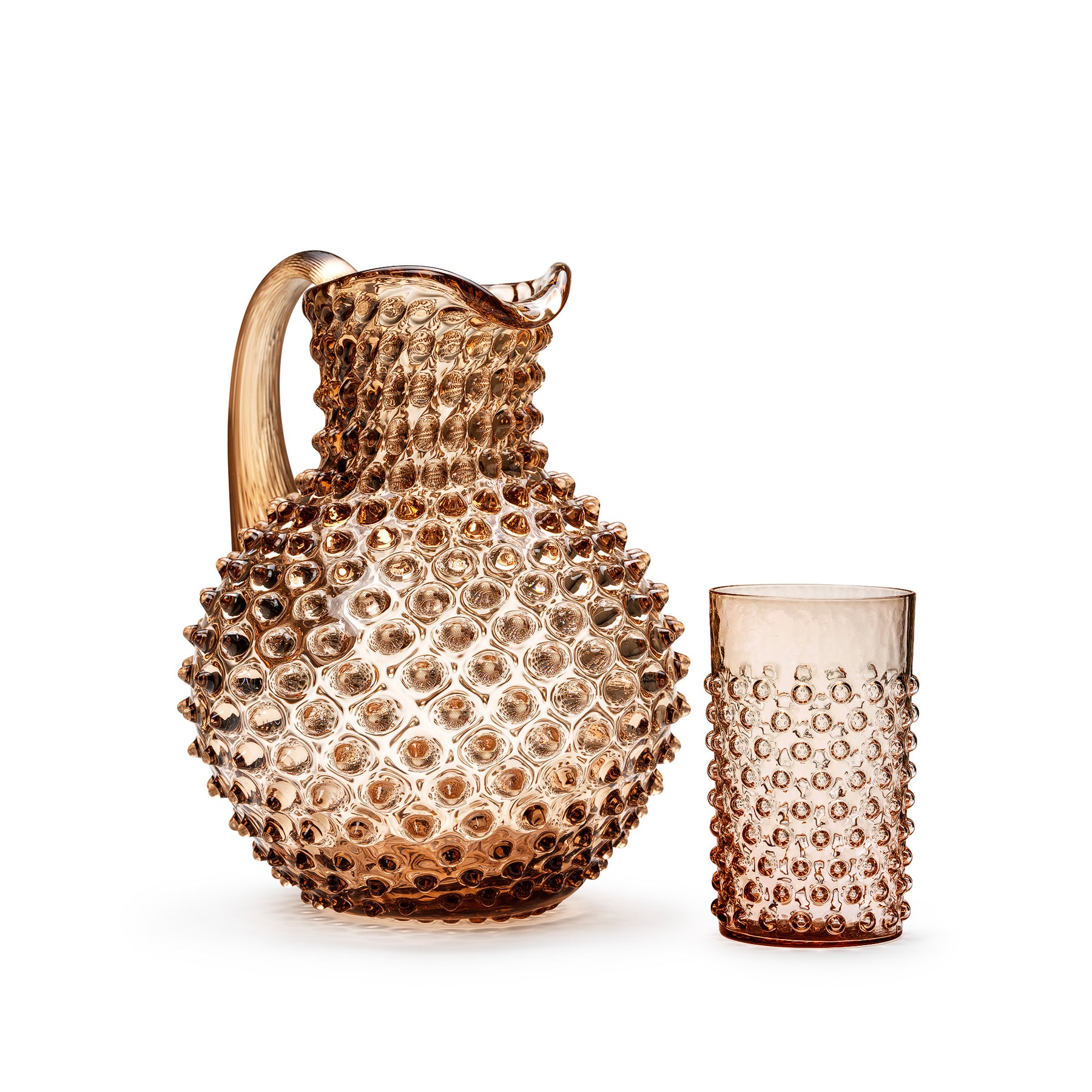 All carafes are handmade and therefore unique in color and appearance giving you a signature collectable piece. The Caroline carafe can be combined as a functional carafe for refreshing beverages as well as a true decorative item for your home.