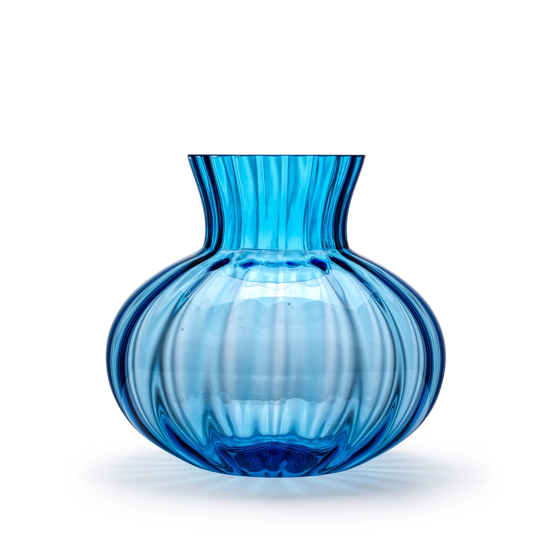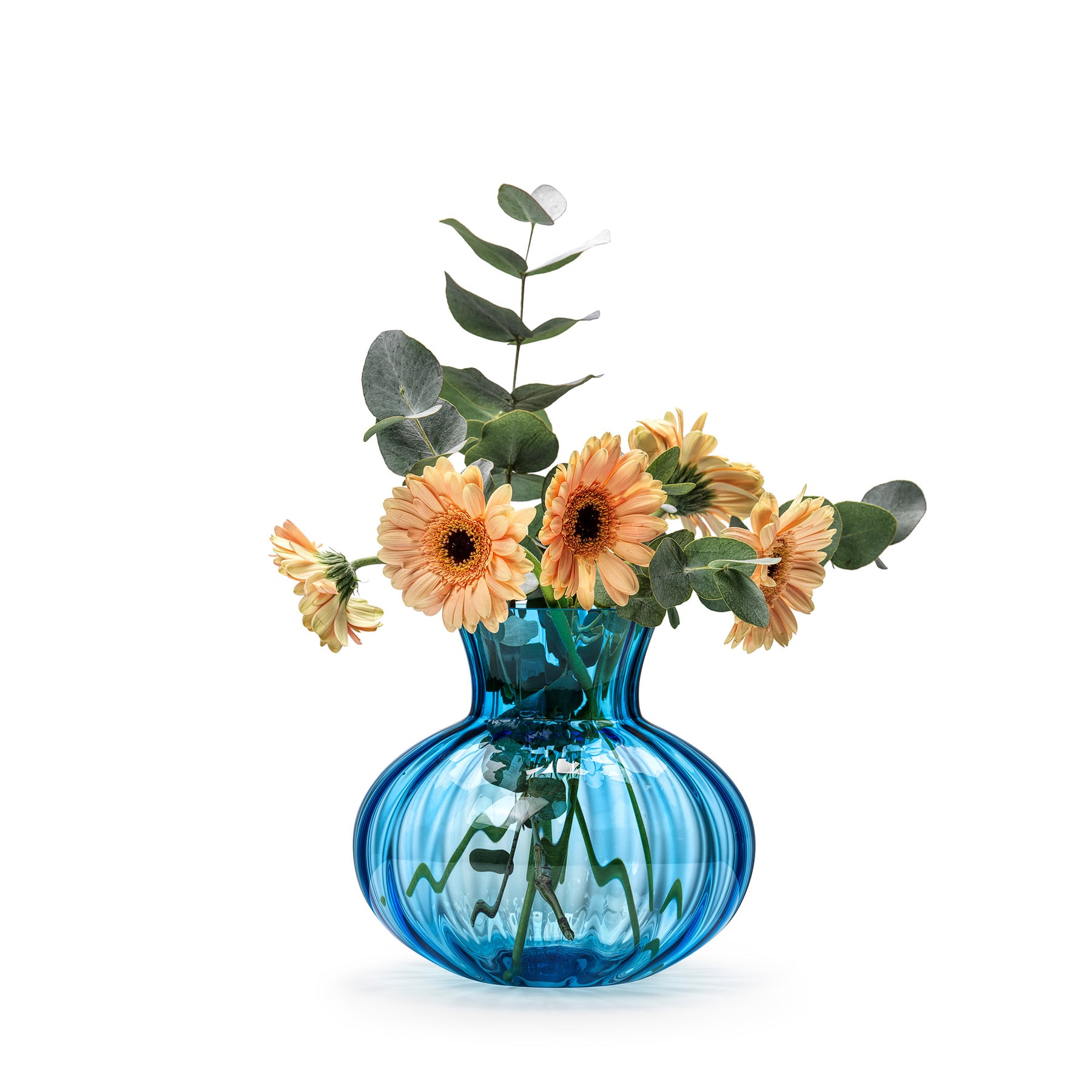 Beautiful In Flore Celine vase, large, in a light blue color. Our Celine vase is handmade in glass with characteristics of sparkling clarity and brilliance. All vases are handmade and therefore unique in color and appearance giving you a signature collectable piece.