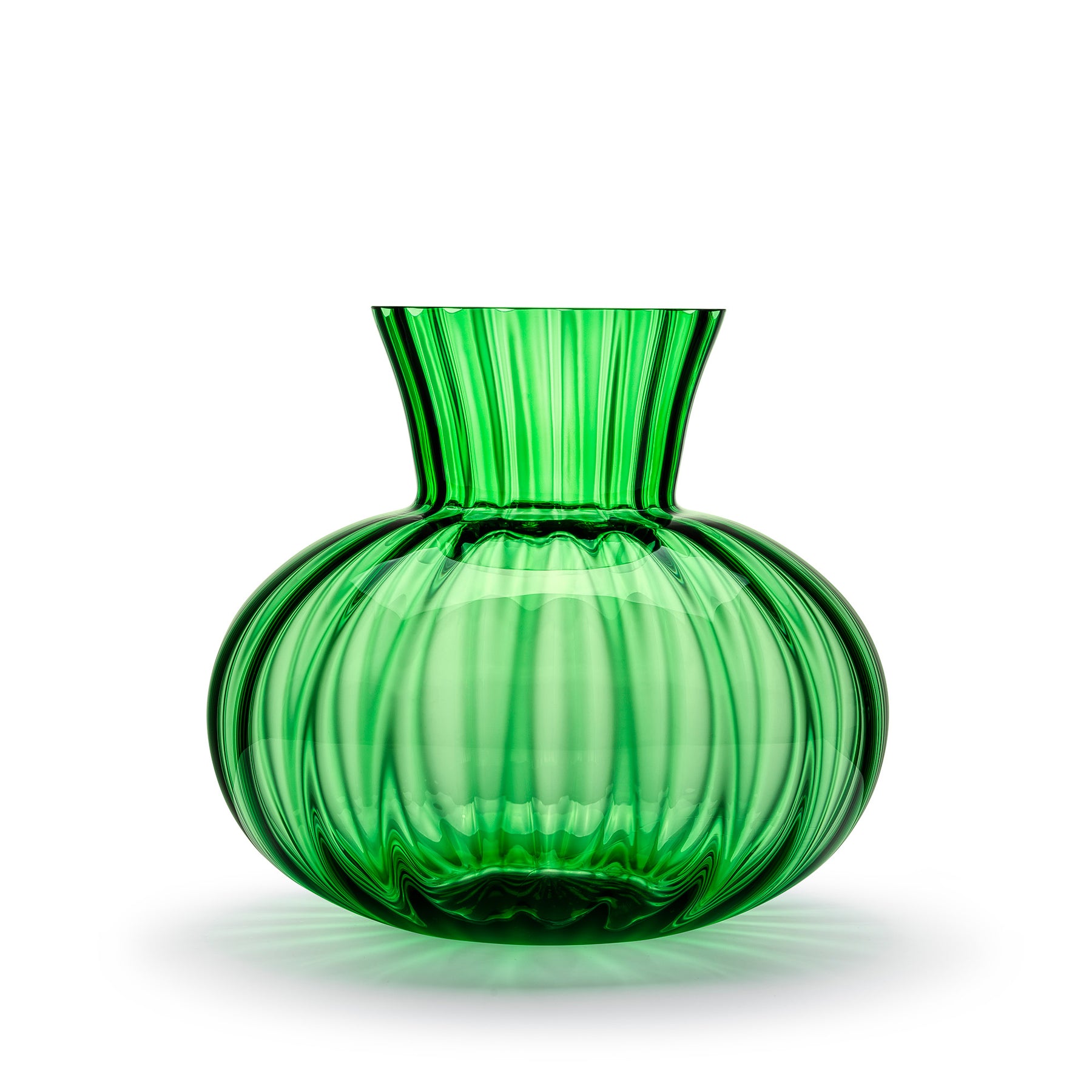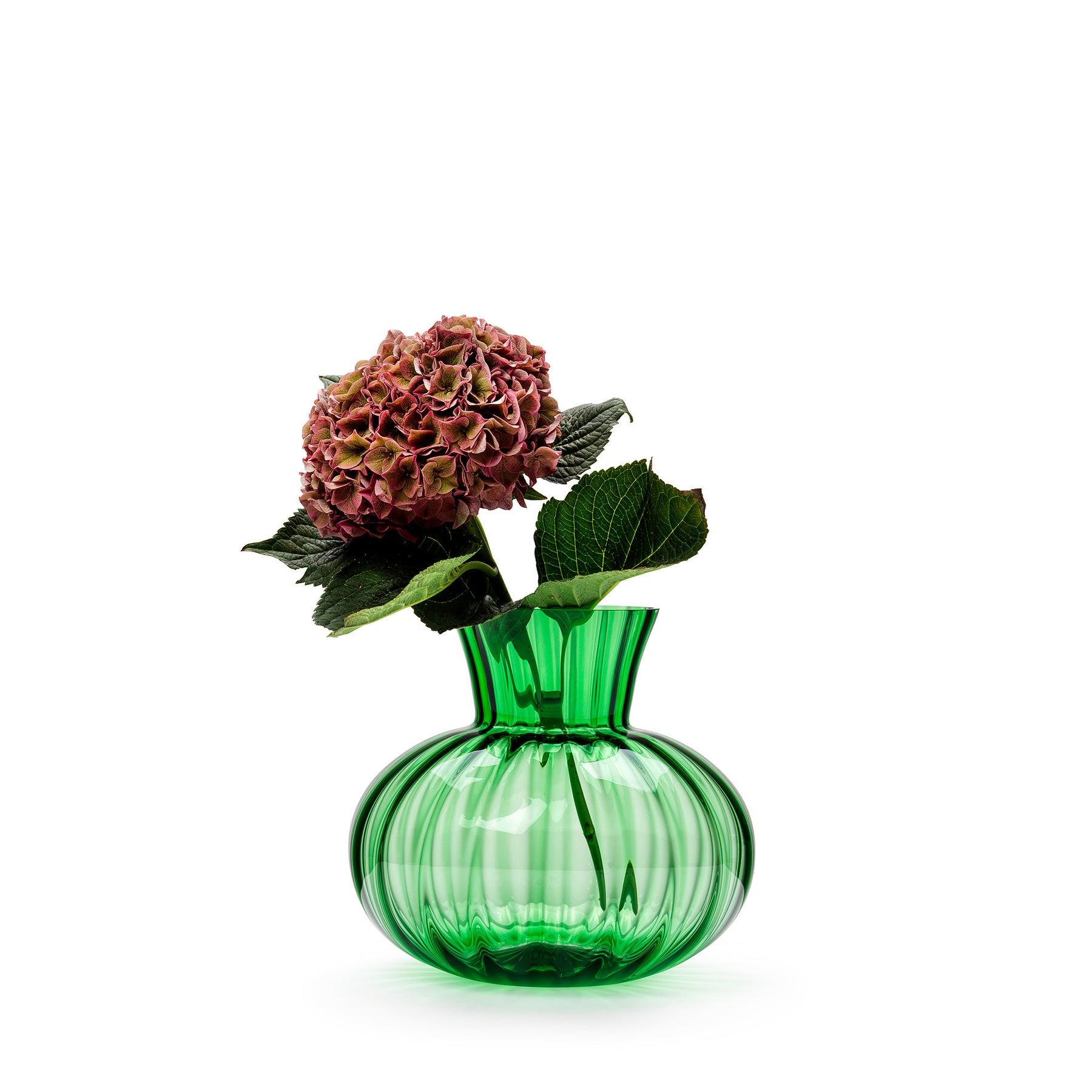 Beautiful In Flore Celine vase, large, in a pretty green color. Our Celine vase is handmade in glass with characteristics of sparkling clarity and brilliance. All vases are handmade and therefore unique in color and appearance giving you a signature collectable piece.
