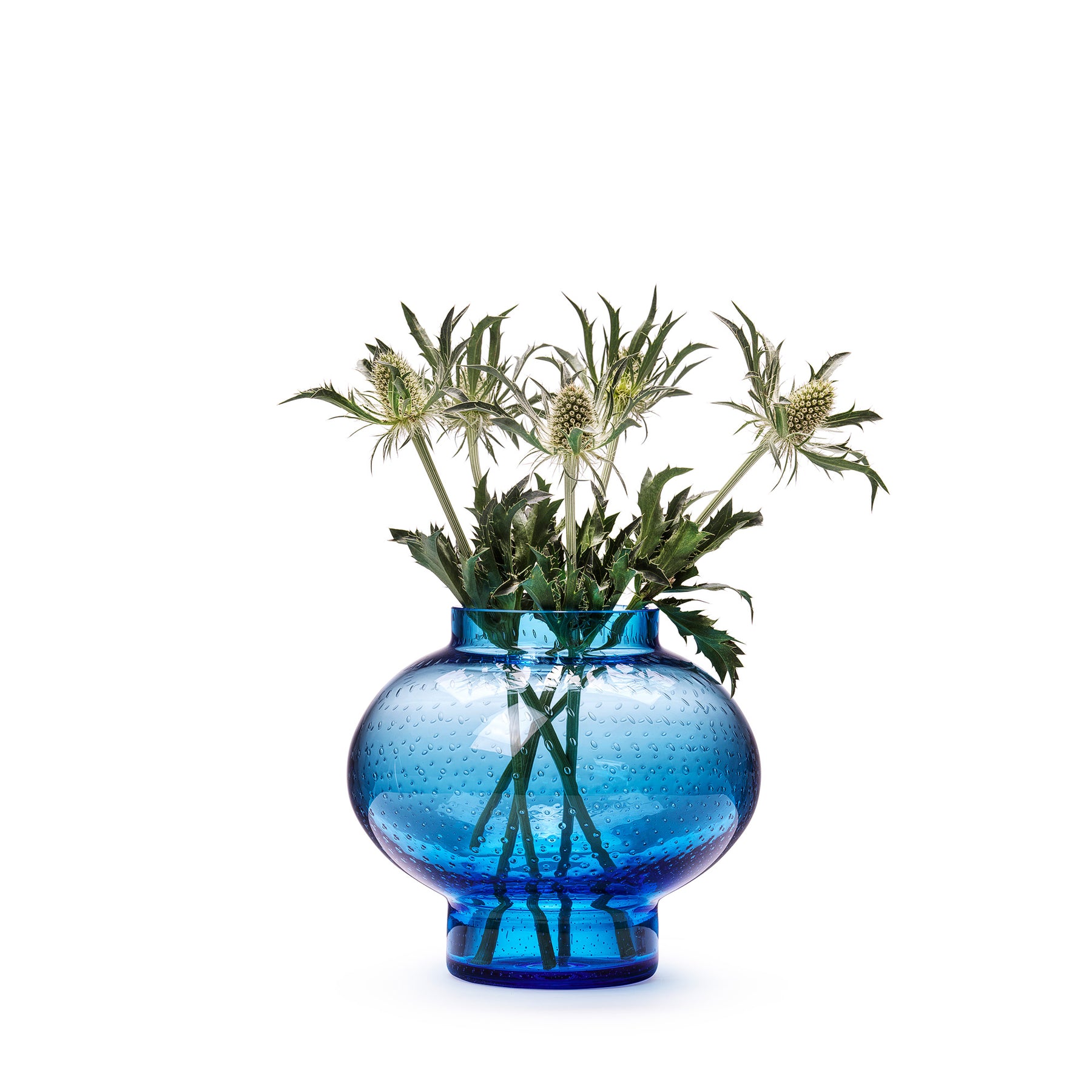 Beautiful In Flore Clara vase, large, in a light blue color. Our Clara vase is handmade in glass with characteristics of sparkling clarity and brilliance. All vases are handmade and therefore unique in color and appearance giving you a signature collectable piece.