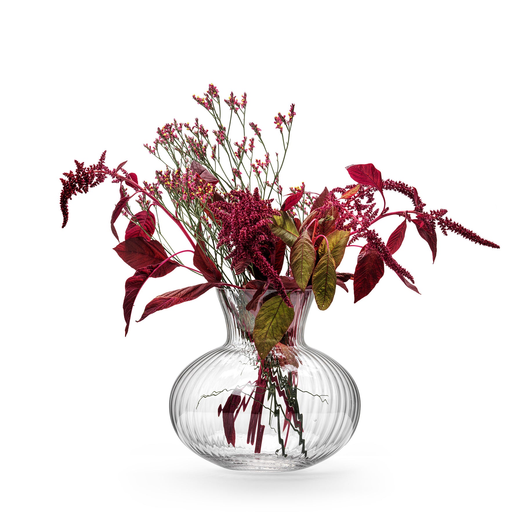Beautiful In Flore Catherine vase, large, in a clear white color. Our Catherine vase is handmade in glass with characteristics of sparkling clarity and brilliance. All vases are handmade and therefore unique in color and appearance giving you a signature collectable piece.